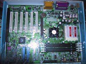 前两天,我们发布了KT133A的性能评测数据后,引起了许多网友的兴趣,纷纷询问KT133A主板是否有已上市的产品。今天,我们接到经销商的消息,使用KT133A芯片组的EPOX磐英8KTA3刚刚到货,并且已经摆上柜台,请看我们提供的照片: