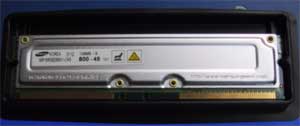 本站的小D曾在“行情快递:珍稀动物——单卖的Rambus内存”一文中向大家介绍过在硅谷见到了单卖的Rambus内存。今天我在中海的201#也见到了单独出售的Rambus内存,与小D见到的Rambus(蓝色外包散热片)不同,我见到的Rambus的外包散热片是白色的,参考下面的照片: