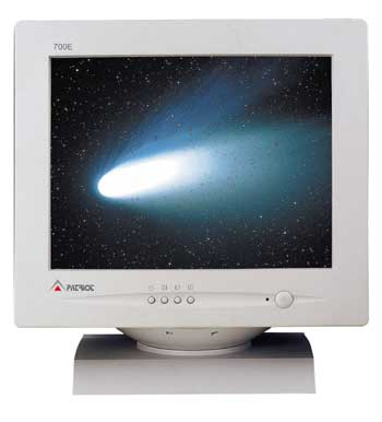 (新闻稿 华旗资讯提供)2001年的显示器市场将是大展宏图的一年,也是竞争愈演愈烈的一年。产品技术的完善,品质服务的提高,将是显示器市场竞争的两大法宝。但是还有一点是不容忽视的,就是产品的不断更新。 近日,爱国者系列显示器又添新品——15寸的500E和17寸的700E。这两款显示器是爱国者以中端品质冲击低端显示器市场的重磅炸弹。下面我们将这两款产品的技术特点作一下一一介绍。 首先,将要出场的是17寸的700E。此款显示器的整体外型形象朴素大方、简洁明了。显示器的左上角为“700E”的型号字样,左下角是灰红相间的“爱国者”标志及英文字样,其独特之地在于显示器的正下方有一条梭状的横条,横条将其四个OSD菜单调节按钮和电源开关、电源显示灯囊括在内,低托为方型,正好与显示器的正面形象遥相辉映。超黑晶显像管以其优质的显示画面争得了广大用户的好评,700E也同样成功的运用了该显像管,并且延用了其超黑晶技术。其显示器的点距为:0.27mm,其水平扫描频率为:72KHz,垂直扫描频率为:50—120Hz,最高分辨率可达:1280*1024(逐行)。