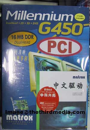 自从Matrox的G450的三款显卡上市以来,已经很久没有见到G450的新产品了,不过今天笔者在市场上得知,又有两款新的G450显卡到货了。